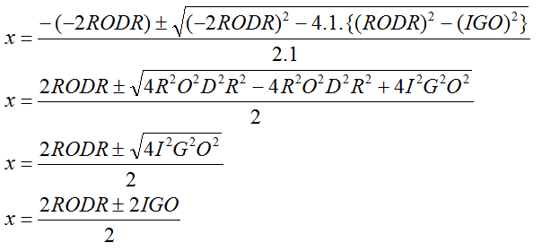 Temos que a=1, b= -2RODR e c= (RODR)2 _ (IGO)2